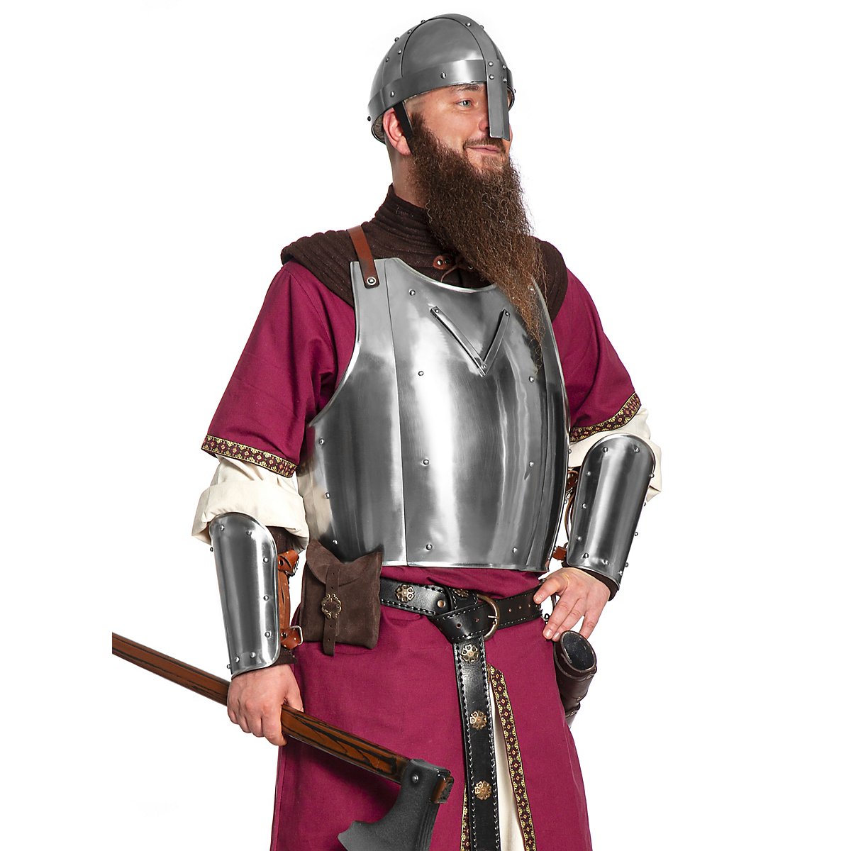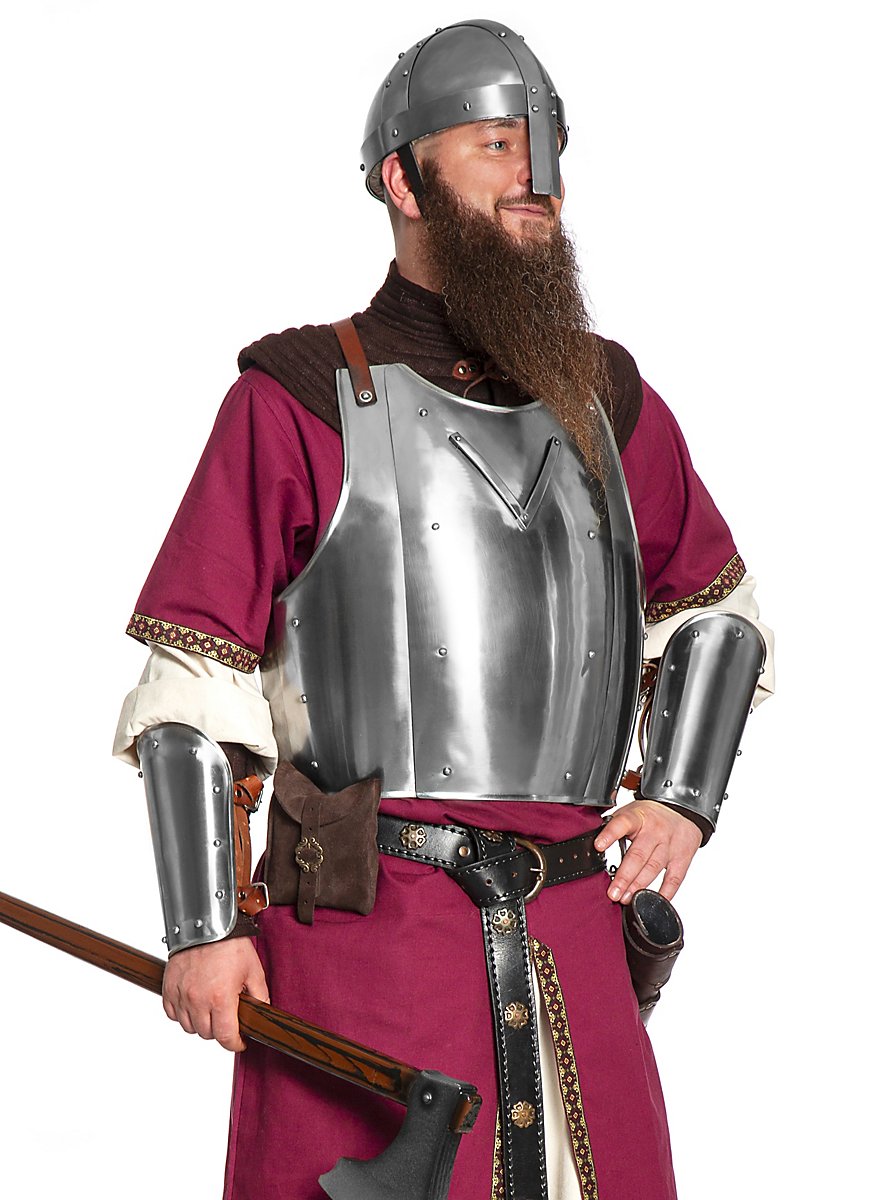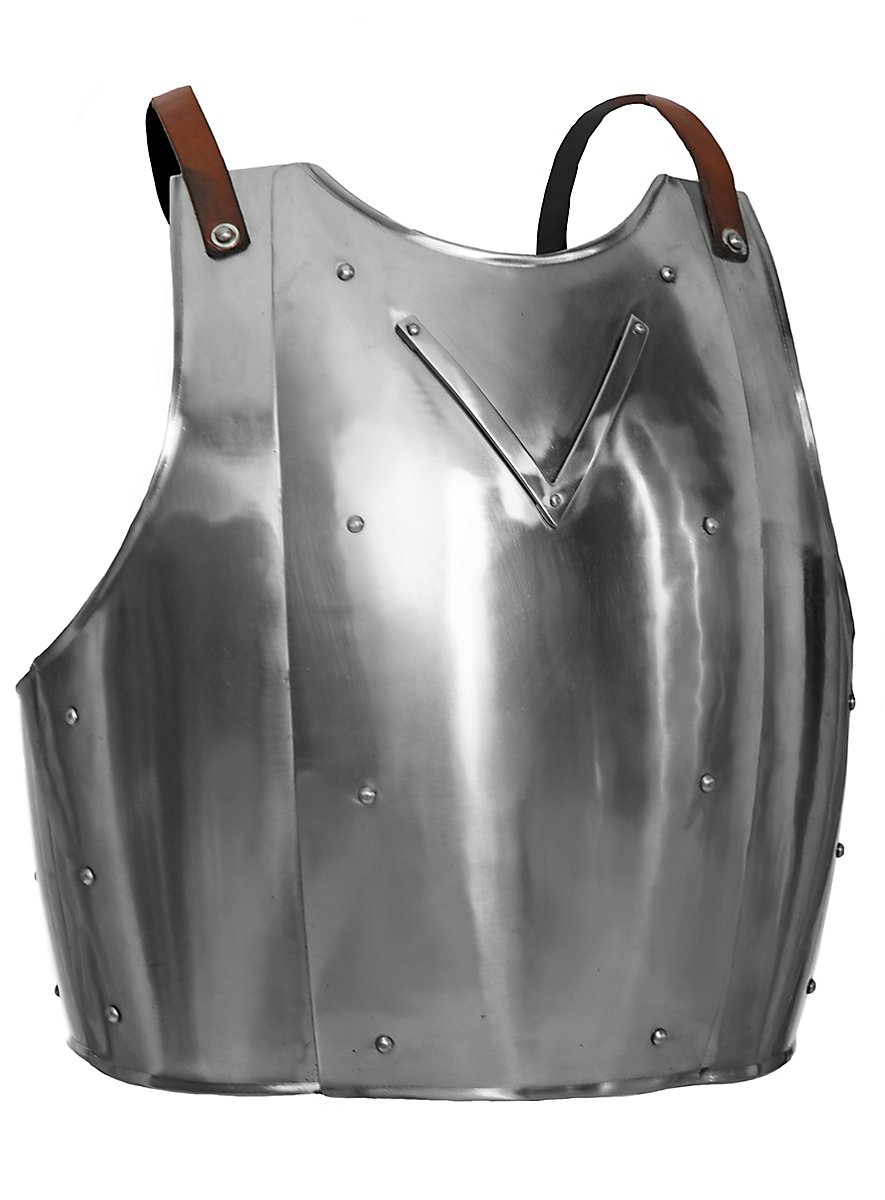 Einer der berühmten Brustpanzer aus Churburg ist nun auch in unserem Sortiment mit passenden Plattenrüstteilen erhältlich. Der Brustpanzer ist angelehnt an Vorbilder aus der mittelalterlichen Rüstsammlung in Churburg, Südtirol. Auf Churburg findet man die weltweit größte private Rüstkammer. Diese enthält eine fast vollständige Ausrüstung einer kompletten Burgbesatzung, mit rund 50 vollständig erhaltene Rüstungen, Schwertern und Ähnlichem.
