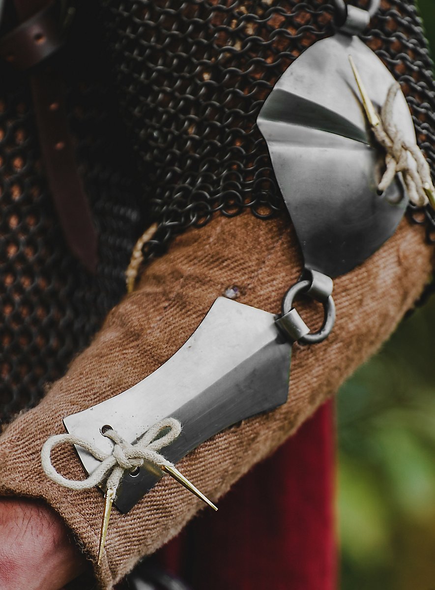 Jack Chains sind eine spezielle Variante des Armschutzes, sehen aber nicht nur echt gut aus, sondern schützen auch zuverlässig ohne zu sehr einzuschränken in der Bewegung. Sie lassen sich am besten mit langen Schnüren an einem Gambeson direkt anbringen. Diese leichte Form der Rüstung war unter anderem auch bei Landsknechten und anderen Söldnern des Spätmittelalters recht beliebt.