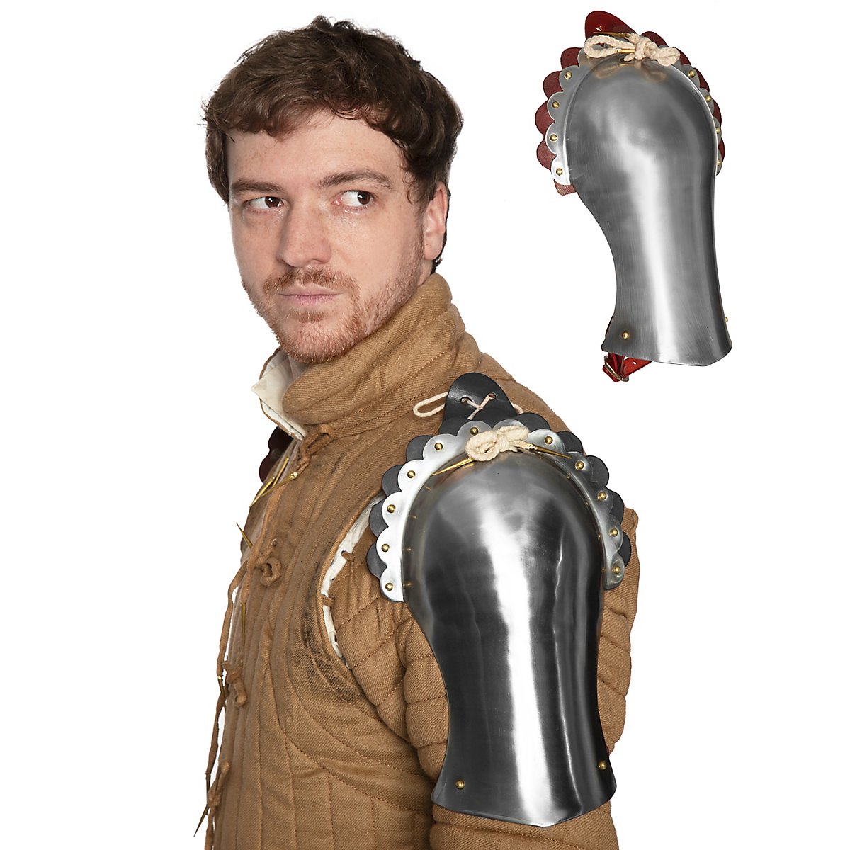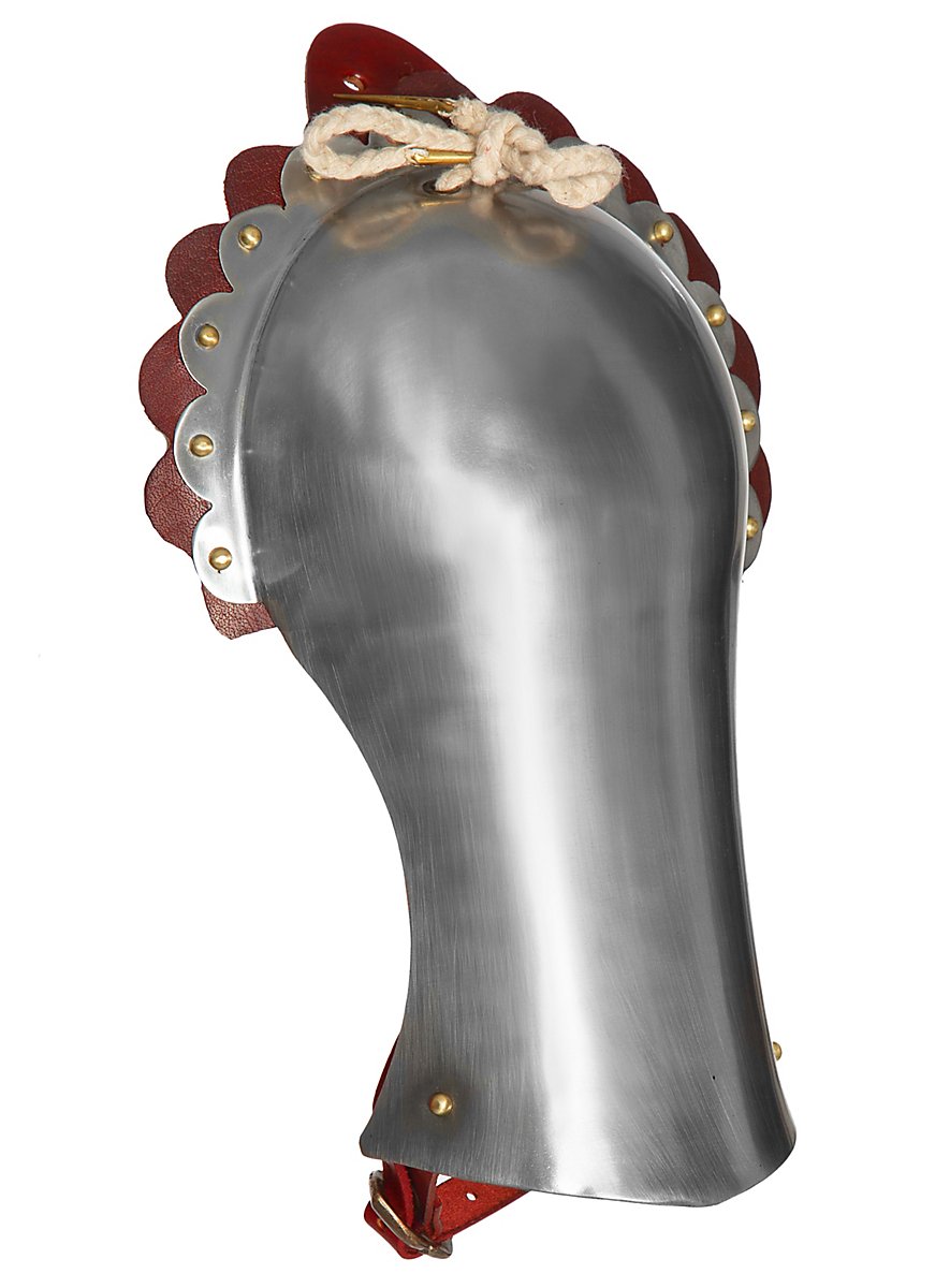Diese Plattenschultern werden nicht wie oft üblich mit Schnallen an z.B. Metallkrägen oder Brustpanzern befestigt, sondern wie historisch üblich, durch Schnüre am Rüstwams, Gambeson oder Kettenhemd.